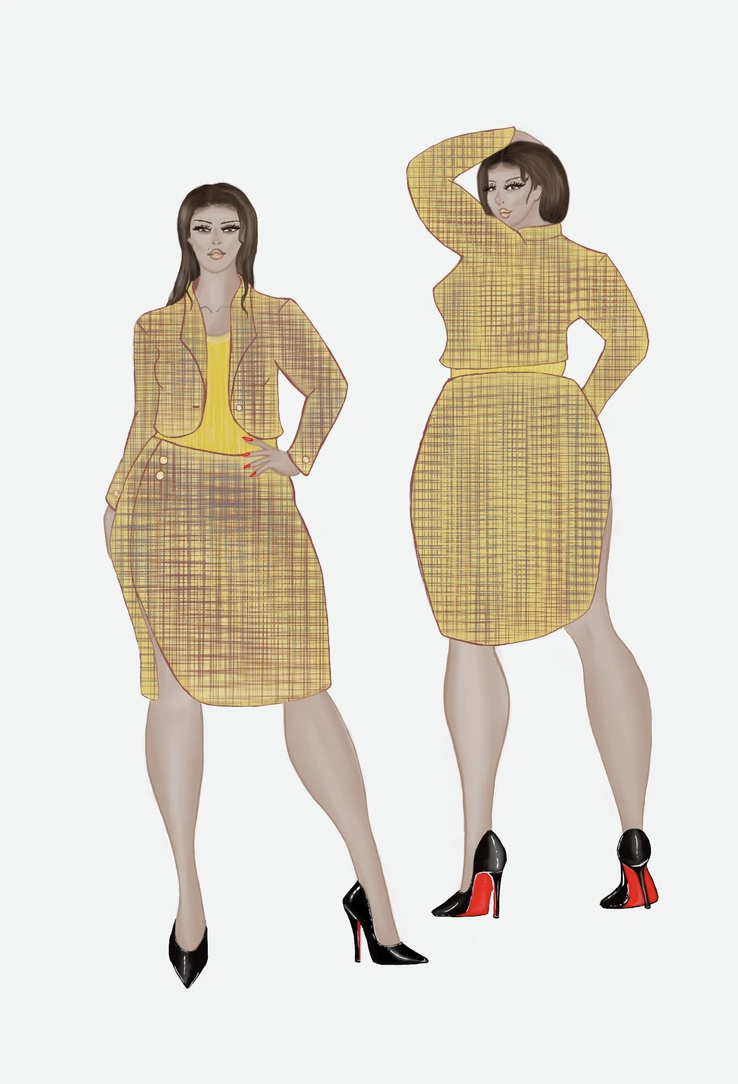 This was my first attempt at drawing a digital fashion design; it was for a project we did in textiles class. Inspired by Cherβs iconic plaid two-piece set in Clueless, my classmates and I purchased the fabric at a textile store as we thought it would make a nice dress.